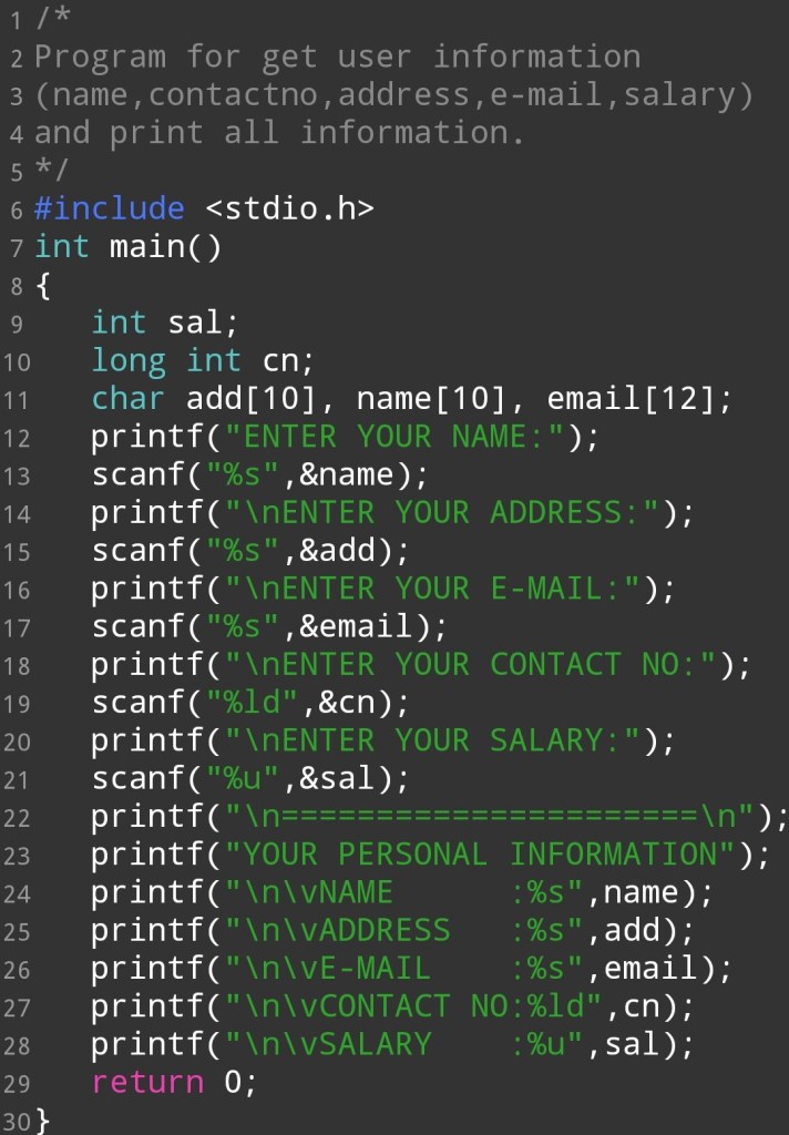 printf(“\nCHAR SIZE %d.”,sizeof(c_size));