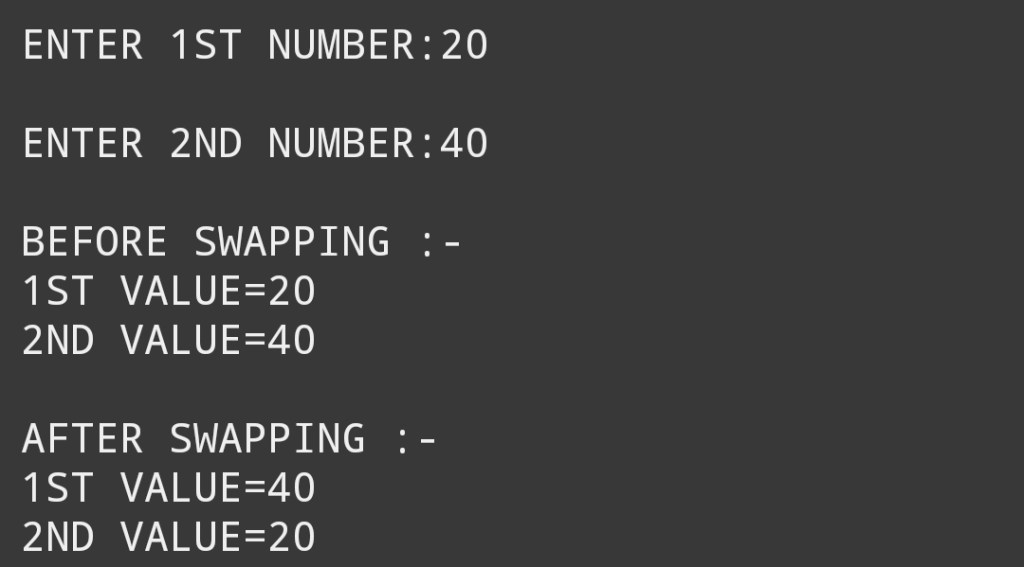Q. A = 20 and B = 40 perform swapping between A and B without using thrid variable.